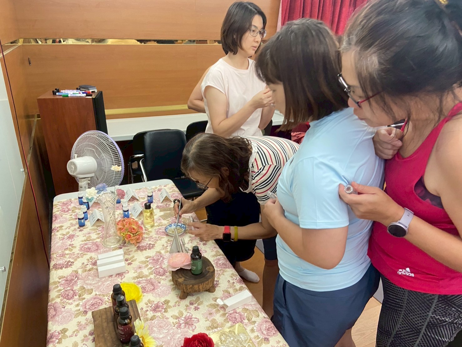 ▶活動中成員親身體驗多款按摩工具,放鬆大腿、眼壓與肩頸,還學會如何安全地刮痧與自我放鬆~