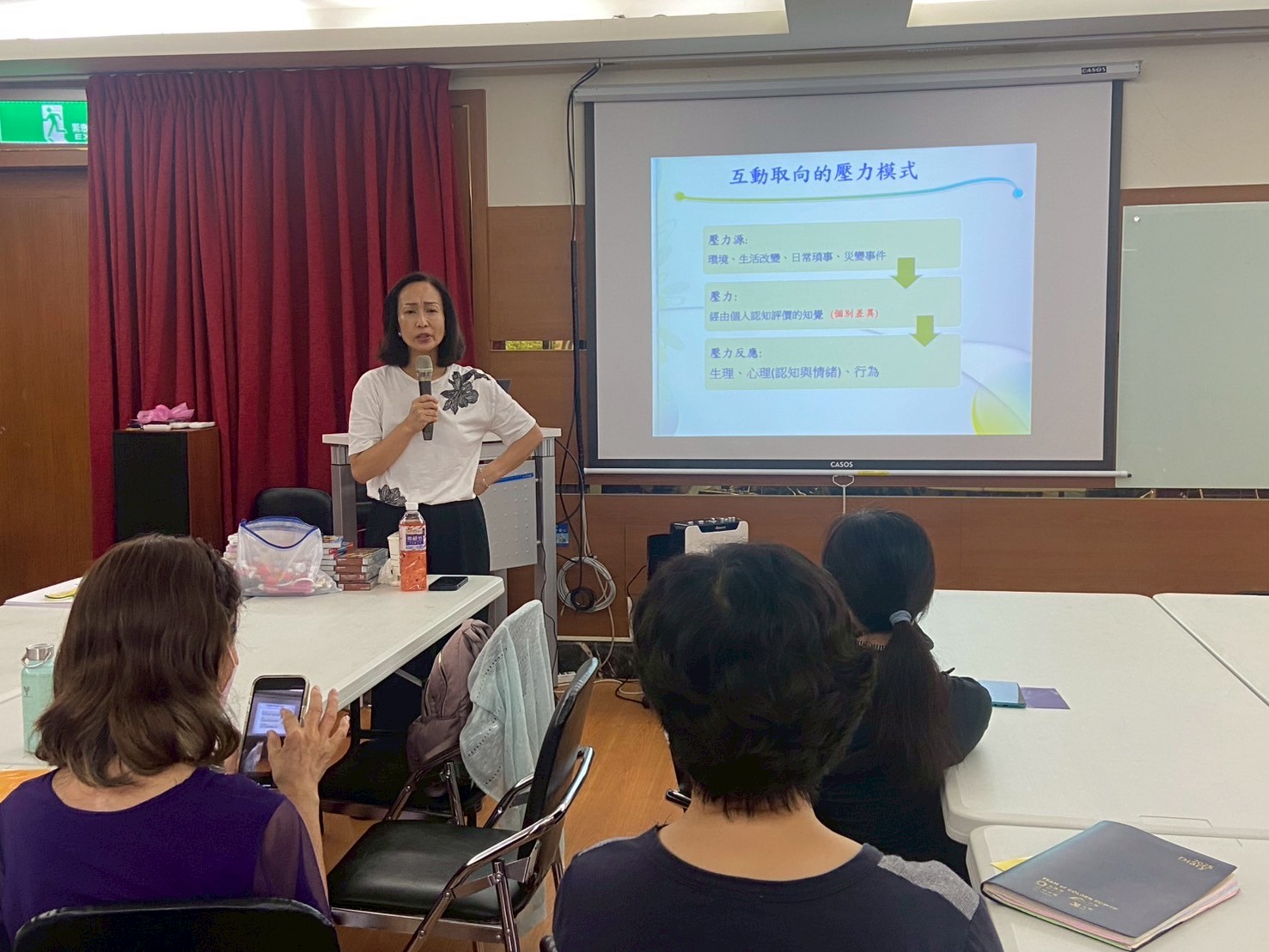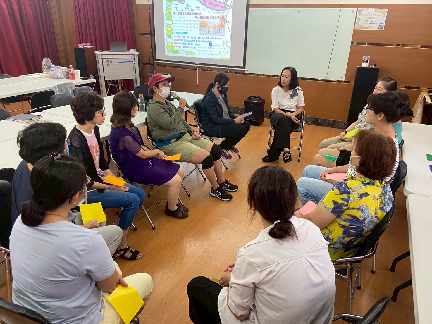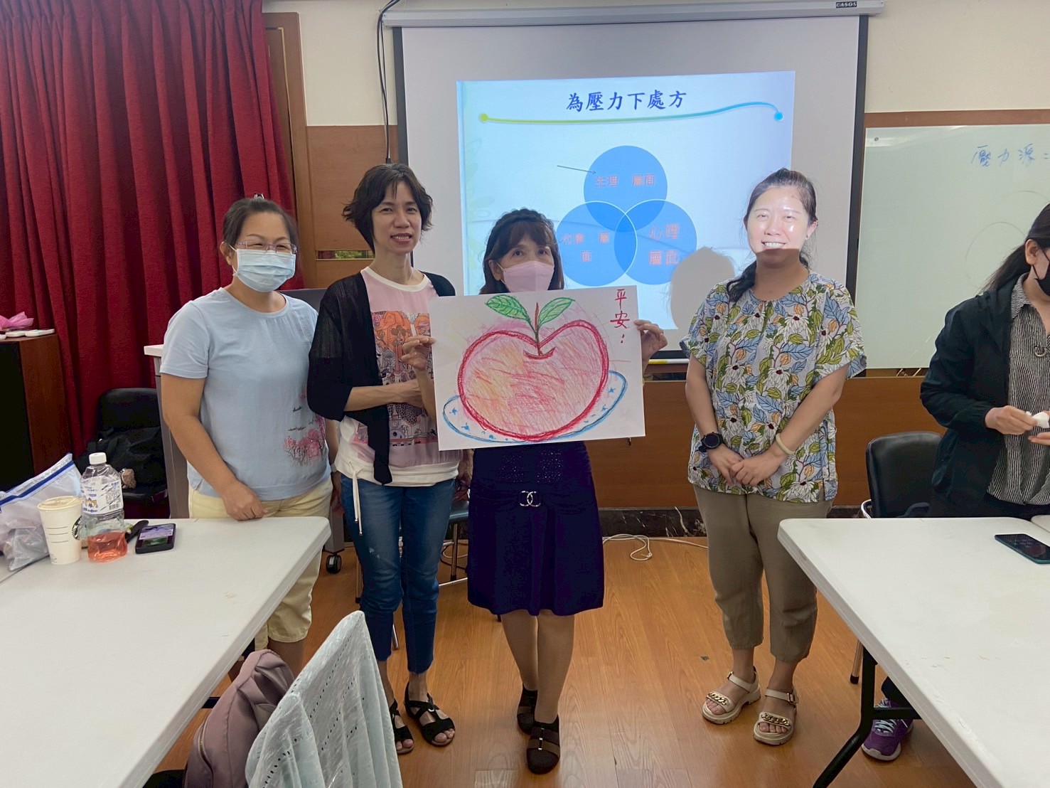 有成員說:「我很怕失控,希望學會放鬆的方法」,也有人點頭附和「我也常常焦慮得喘不過氣」。講師進一步帶大家從生理、心理、行為三層面探索壓力來源,並以分組的方式,傾聽與回饋彼此的壓力經驗,讓空間充滿了溫暖的理解,了解大家都對無法掌控的事情產生焦慮、疲憊;我,並不孤單。