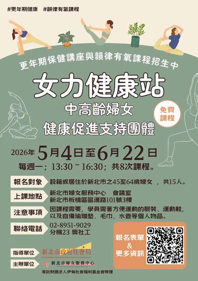 ▶主辦單位:新北市婦女服務中心(財團法人伊甸社會福利基金會承辦)