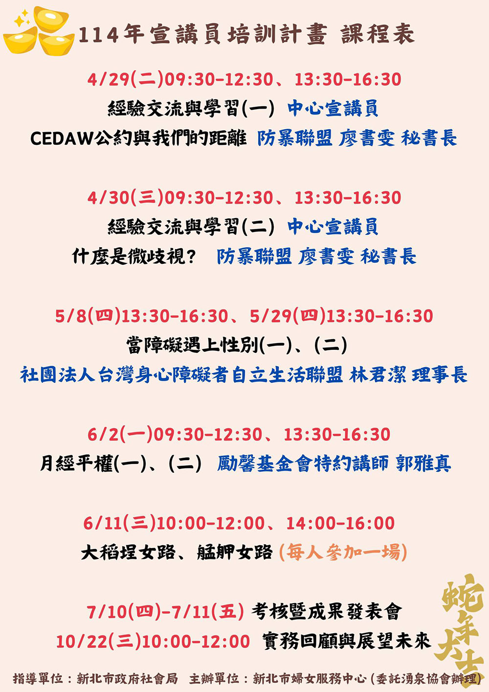 【114年【婦女權益宣講員培訓計畫】開始報名啦!】