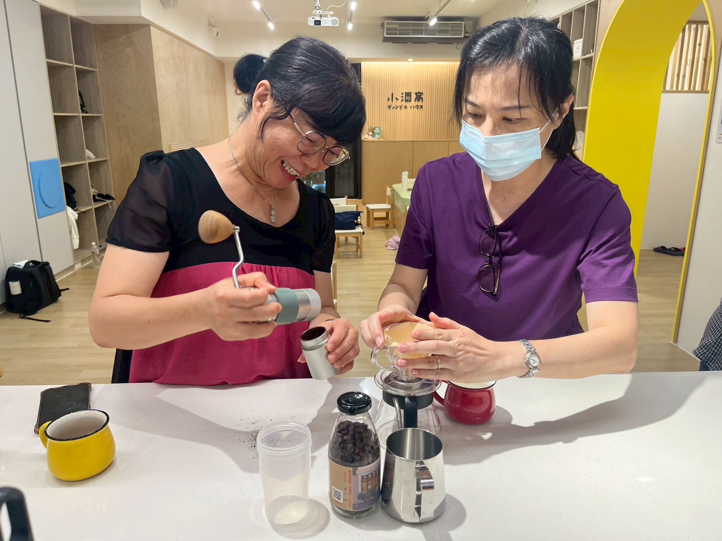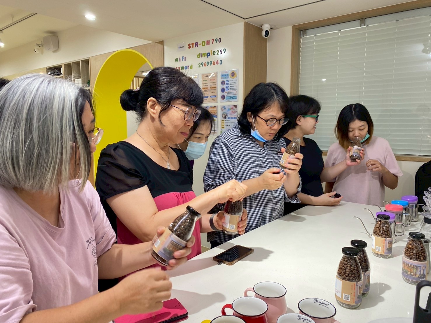 ♥活動中,大家分組體驗,挑選自己喜愛的咖啡豆 🫘,組內成員分工合作,並把沖泡好的咖啡和在場的大家分享、互相品嚐。