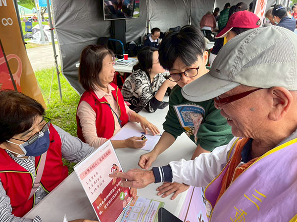 志工夥伴們一大早就精神滿滿到場,確認流程、分工,也在與民眾互動時展現滿滿的耐心與熱情。