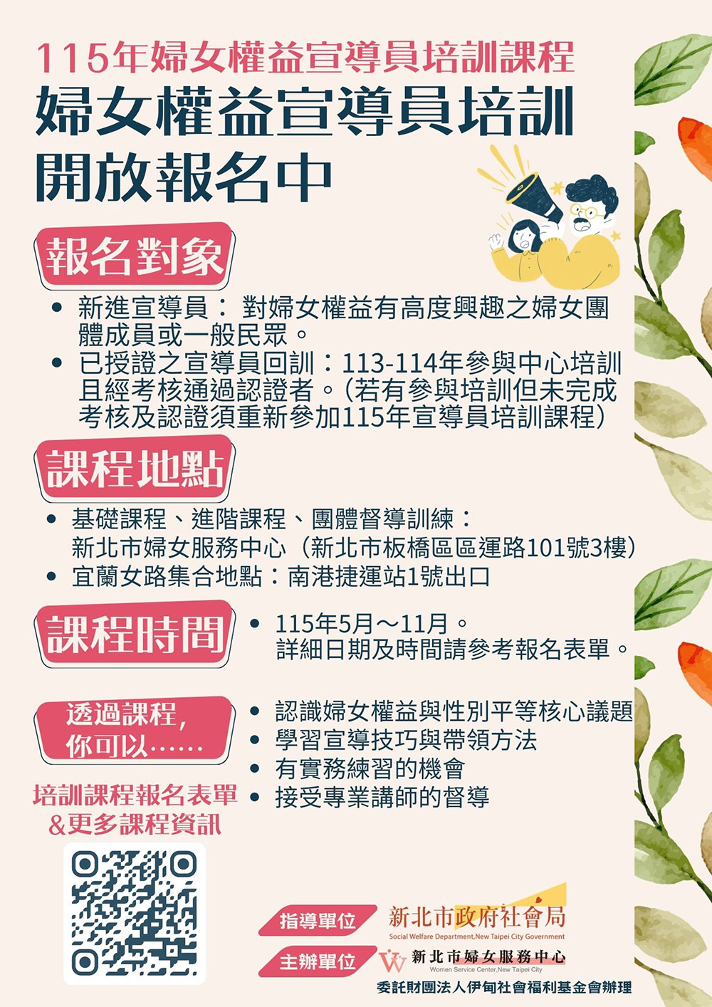 ▶地點|新北市婦女服務中心(板橋區區運路101號3樓)